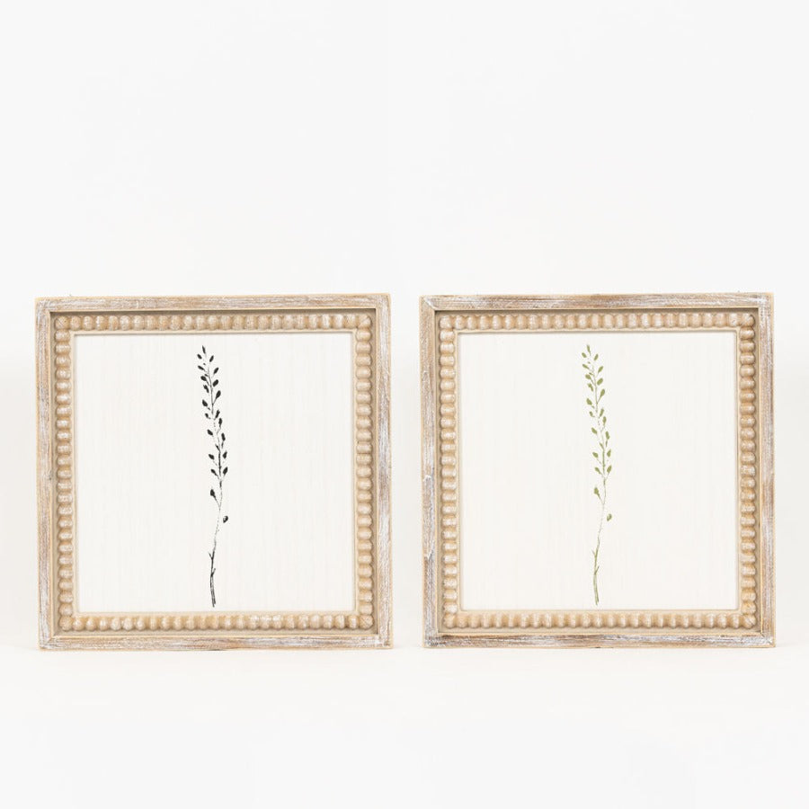 Black & Green Long Stem Herbs Reversible Framed Picture