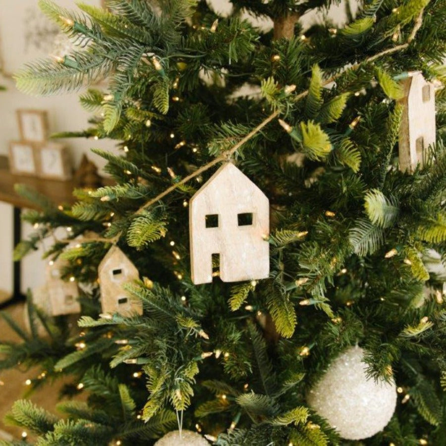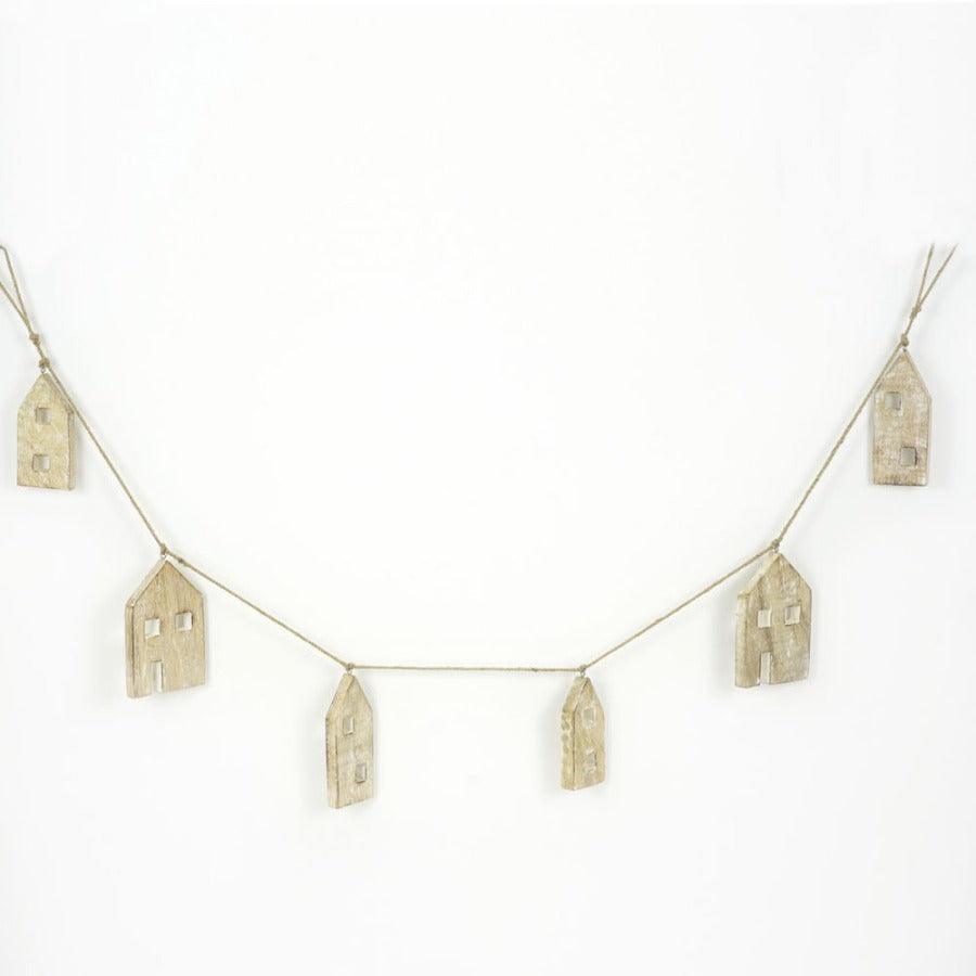 Put a small twist in your decorating this year and use this 5' long mango wood houses garland! Perfect for a mantle or neatly set in your tree!