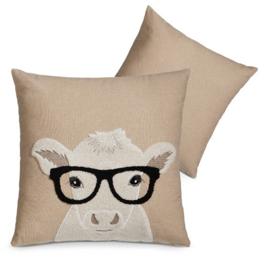 Paired with our cute rabbit with glasses pillow, this Cow with Glasses Pillow is perfect for adding a touch of character and laughter to your décor in your living room or your bedroom!