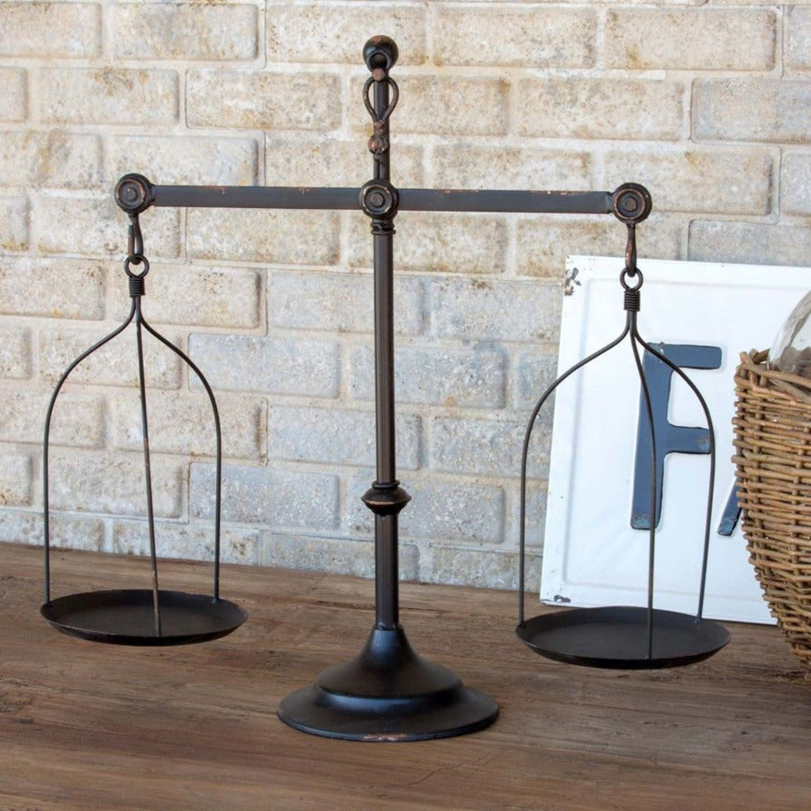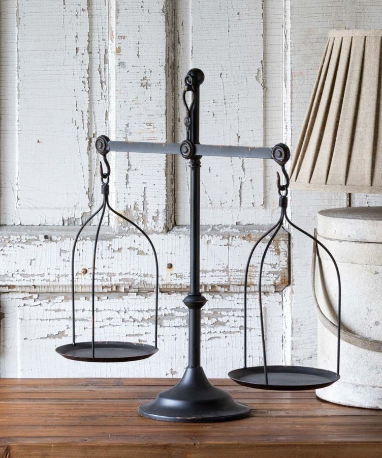 Distinctly unique and full of charm. Our Antique Style Balance Scale reminds us of an old Pharmacy Scale from days gone by. The perfect accent piece to display your treasures and create a focal point on a mantel or shelf.