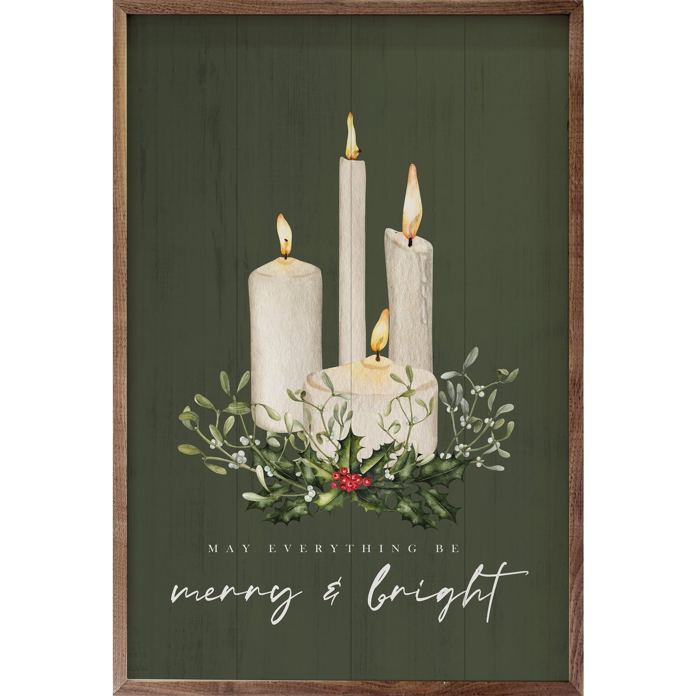 Merry & Bright Candles Green Framed Picture (10 x 16)