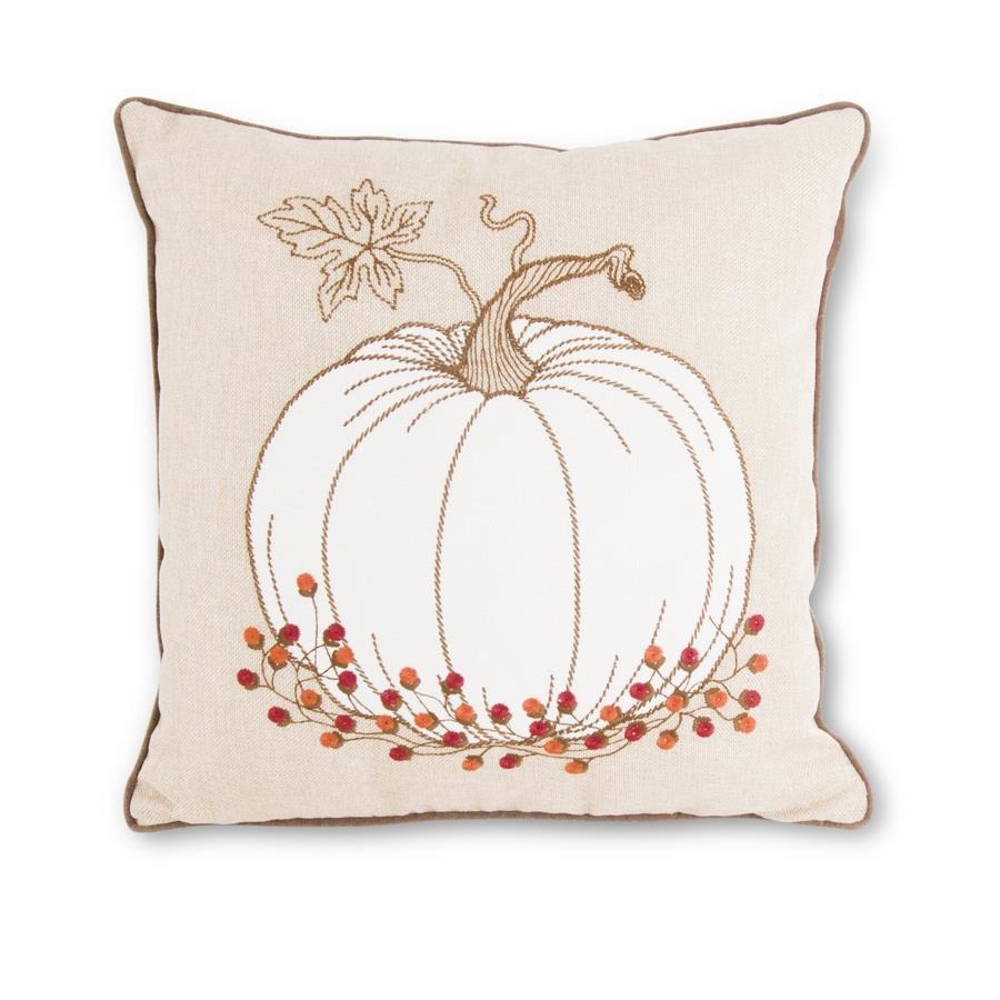 Tan Square Pillow w/ Embroidered Pumpkin